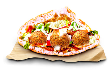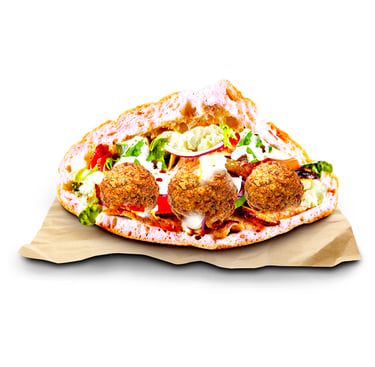Falafel, légumes grillés, choux rouges, feta aop, salade, sauce blanche maison.