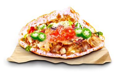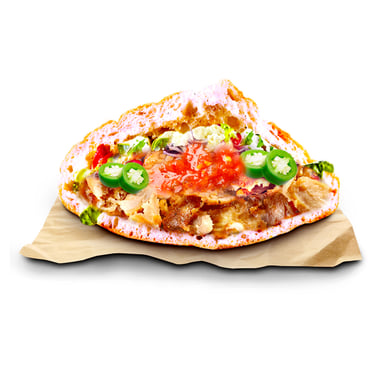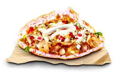 Viande de kebab maison, legumes grillés, jalapenos, choux rouges, salade, sauce spicy maison.