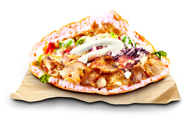 Viande de kebab maison, crudités au choix, sauce au choix.