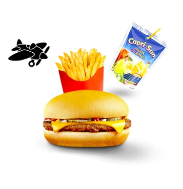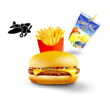 Potato bun, double steak smashé, cheddar, ketchup, moutarde américaine, oignons, pickels.